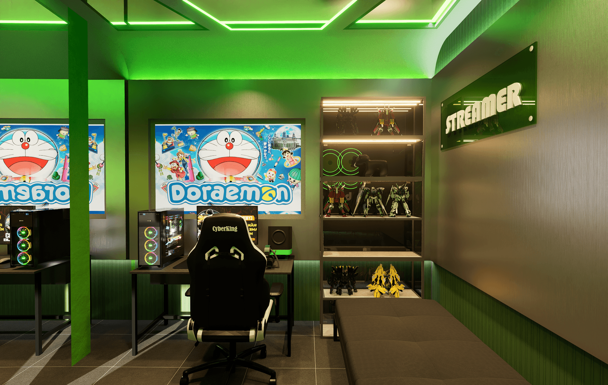 Dự án hướng đến xây dựng một không gian gaming – livestream mang tính nhận diện thương hiệu rõ ràng, tối ưu công năng sử dụng và trải nghiệm thị giác. Thiết kế tập trung vào bố cục thiết bị, kiểm soát ánh sáng, âm thanh và tạo phông nền ấn tượng, giúp nâng cao hiệu suất chơi game và tương tác với cộng đồng người xem.
