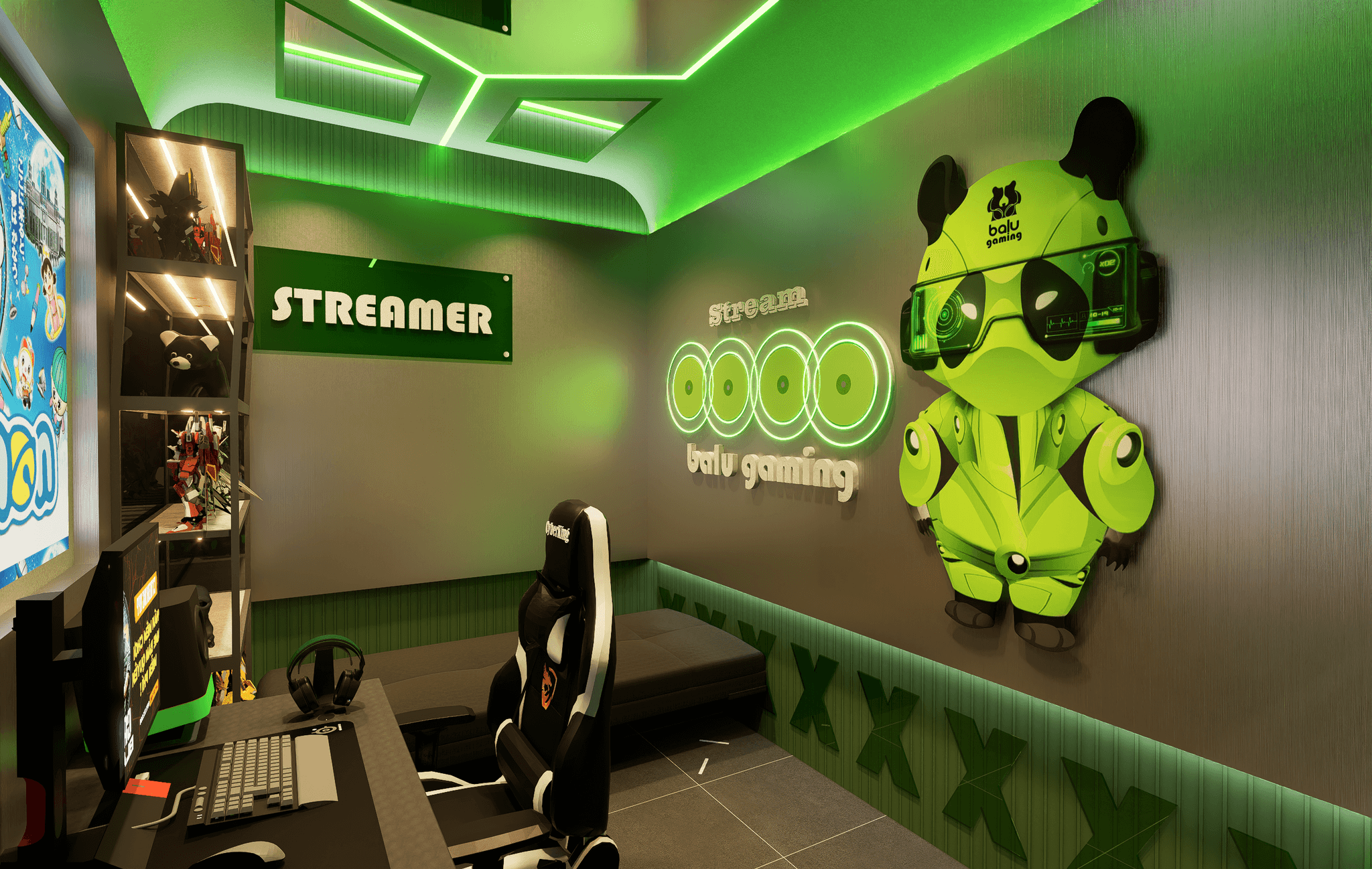 Không gian Balu Gaming được thiết kế theo phong cách Cyberpunk hiện đại, nơi ánh sáng RGB, công nghệ cao và bố cục tối ưu hội tụ. Không gian vừa phục vụ livestream chuyên nghiệp, vừa tạo trải nghiệm giải trí mạnh mẽ cho game thủ..