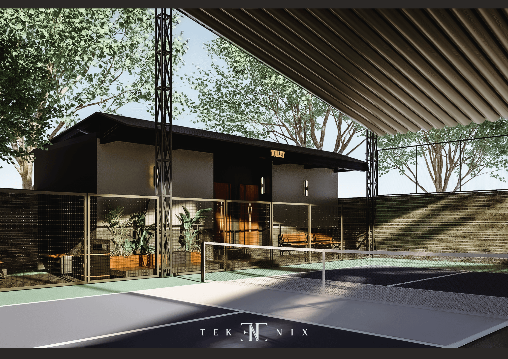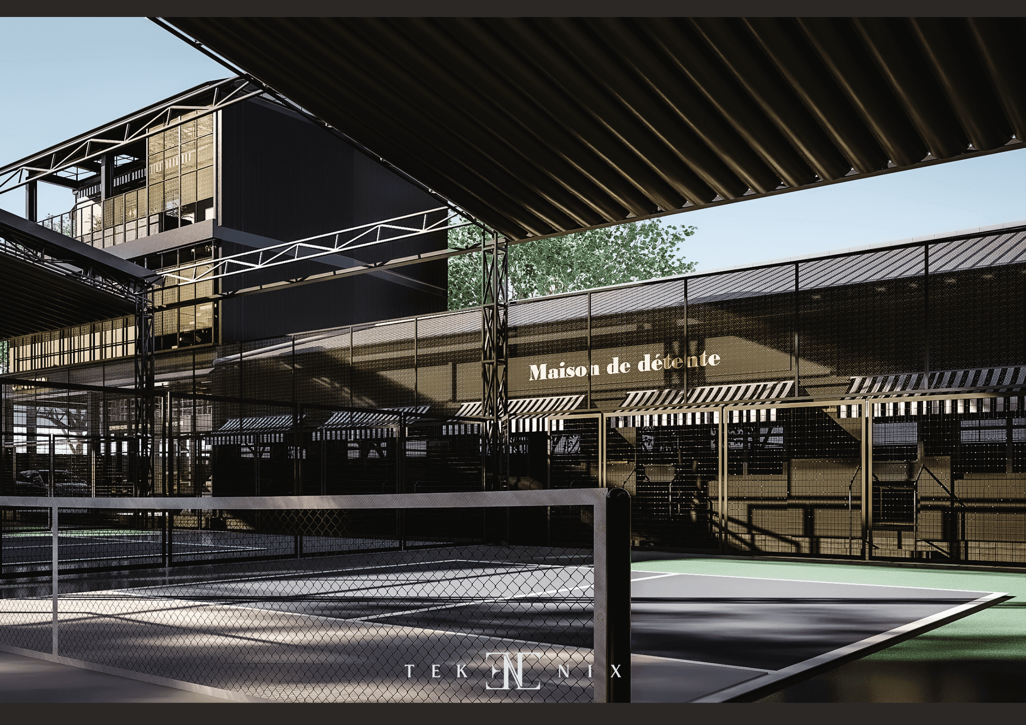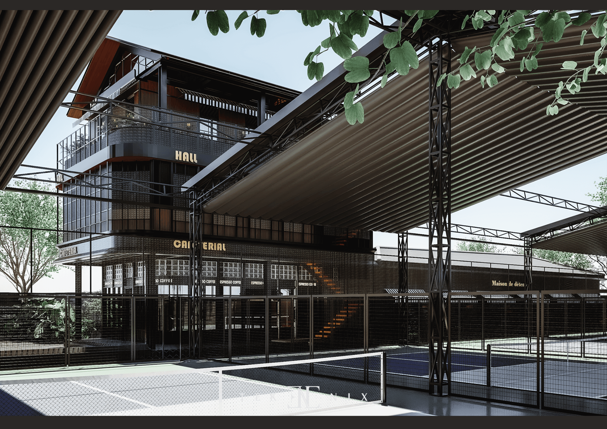 Sân Pickleball CAFETERIA được. thiết kế theo tiêu chuẩn quốc tế và tinh thần sáng tạo của Teknix Concept. Không gian được xây dựng với tính tương phản thị giác rõ rệt. màu sắc mạnh mẽ và vật liệu chuyên dụng. giúp tối ưu hiệu năng thi đấu và tạo nên một điểm nhấn thể thao hiện đại, chuyên nghiệp và giàu bản sắc tại khu vực.