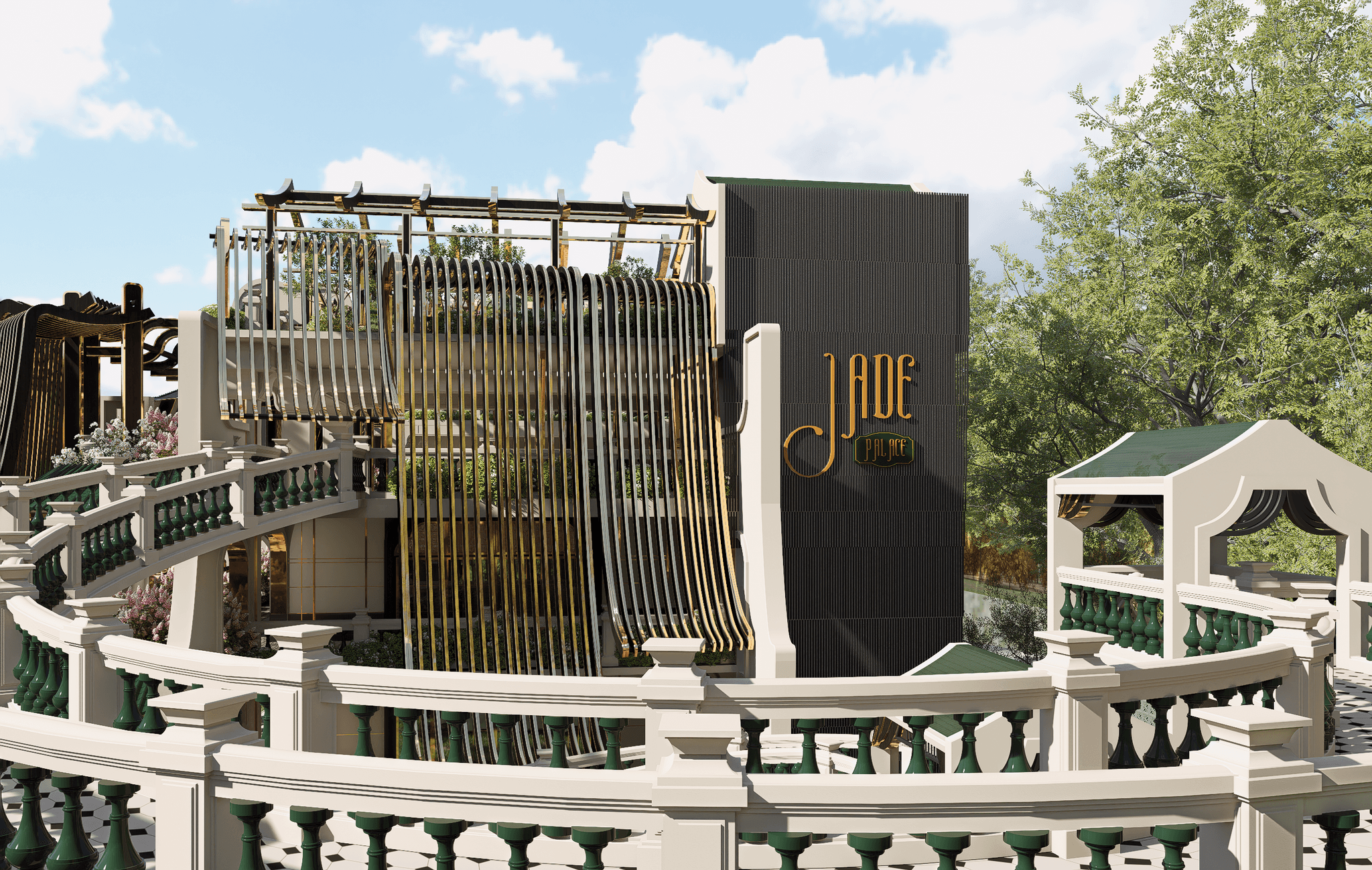 Jade Palace được thiết kế như một không gian ẩm thực và sự kiện sang trọng. phong cách Tân Cổ điển kết hợp hiện đại. Dự án mang đến trải nghiệm tinh tế, ấm cúng và đẳng cấp. Bảng màu quý phái kết hợp cùng vật liệu cao cấp và ánh sáng vàng ấm tạo nên không gian thời thượng, hài hòa và đầy cảm xúc cho khách hàng.