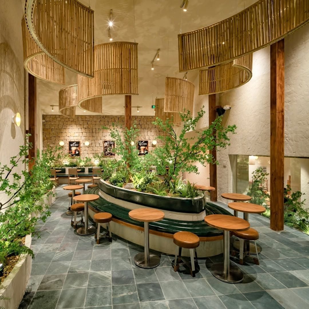 KATINAT QUY NHƠN là cửa hàng đầu tiên của thương hiệu tại địa phương. Công trình có quy mô ba tầng, nổi bật với thiết kế hiện đại, không gian rộng rãi và được tô điểm bằng chất liệu tre nứa độc đáo, mang đậm dấu ấn xanh – bền vững.
