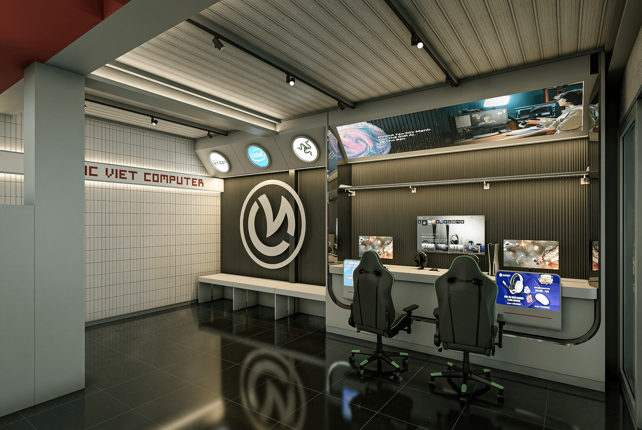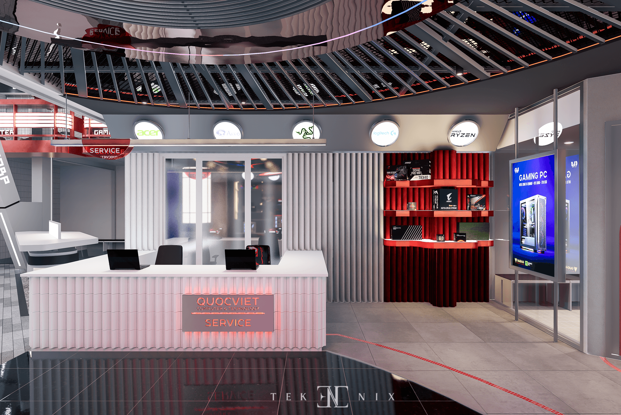 Showroom Quốc Việt hướng đến việc biến công nghệ thành trải nghiệm cảm xúc, nơi kiến trúc, ánh sáng và vật liệu giao thoa tạo nên không gian chuyển động số, biểu tượng cho tư duy tiên phong, tinh tế và triết lý thương hiệu hiện đại.