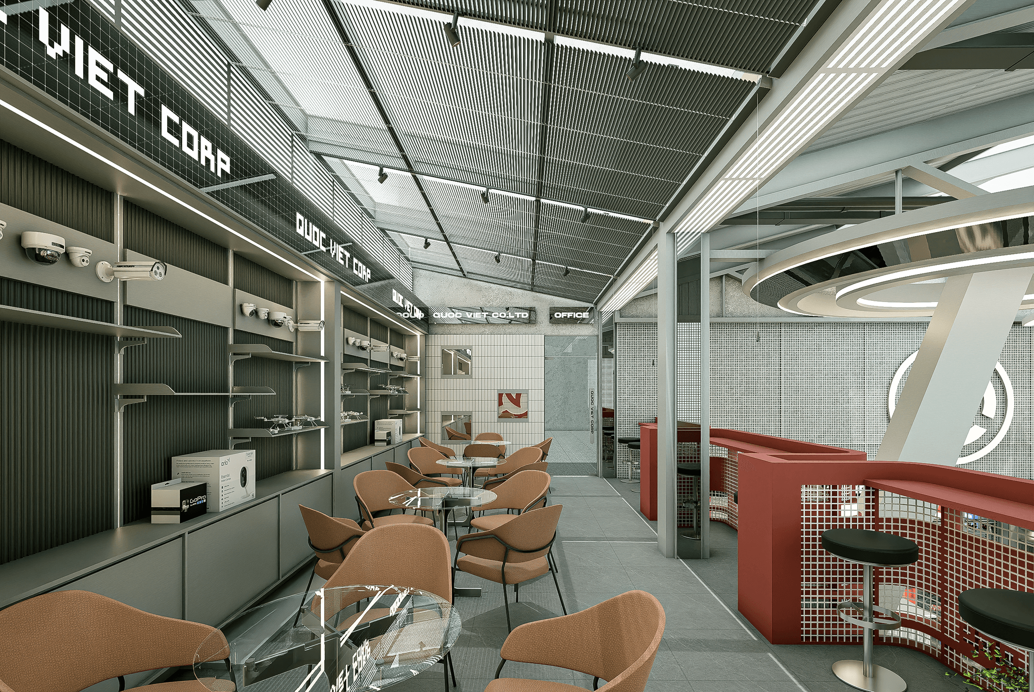 Showroom Quốc Việt Corp được thiết kế theo phong cách High-Tech Modern Luxury, kết hợp ánh sáng LED, hình khối tương lai và vật liệu sang trọng. mang đến trải nghiệm công nghệ đẳng cấp, nơi khách hàng khám phá và cảm nhận tinh hoa công nghệ trong không gian đầy cảm hứng.