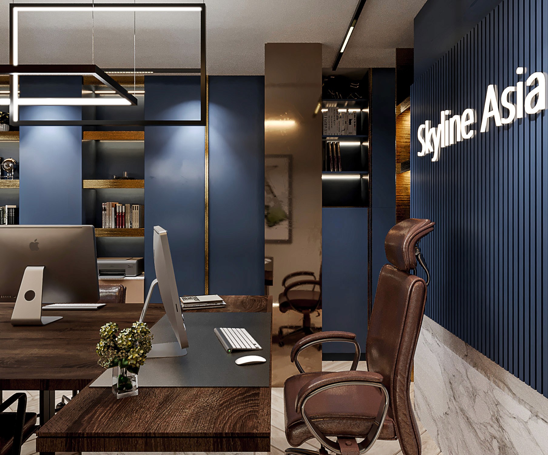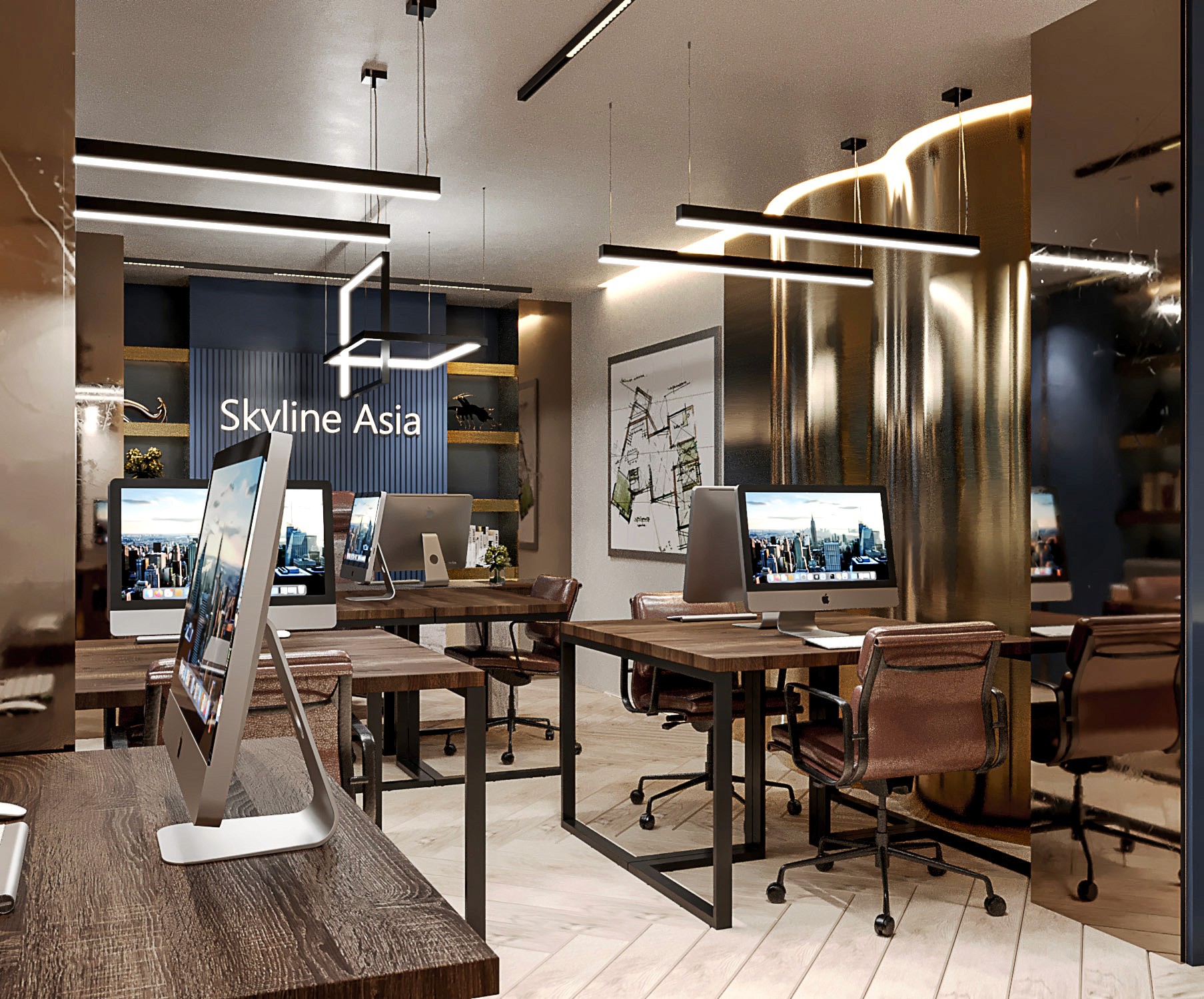 Văn phòng SKYLINE ASIA được thiết kế theo phong cách Modern Minimalism, đề cao sự thông thoáng và ánh sáng tự nhiên. Vách kính toàn diện mở ra tầm nhìn ấn tượng, tạo cảm giác rộng và thư thái. Gam màu trung tính kết hợp nội thất gọn gàng mang đến môi trường làm việc chuyên nghiệp, cởi mở và truyền cảm hứng, tối ưu cho sự tập trung và sáng tạo hằng ngày.