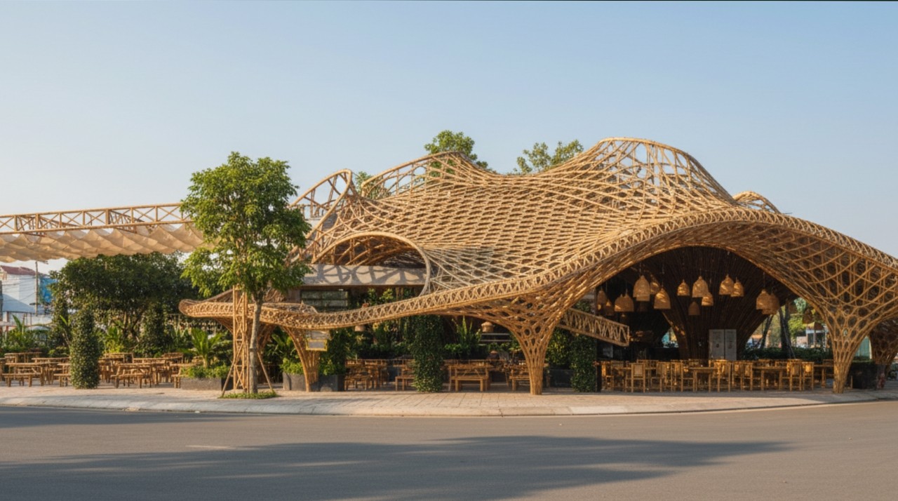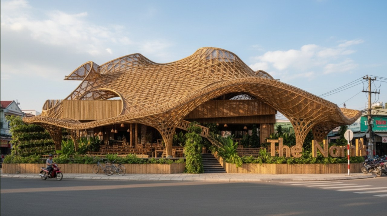 Giải pháp bền vững: Thiết kế tận dụng tối đa thông gió tự nhiên, ánh sáng trời và vật liệu bản địa như gỗ, tre, lá dừa, giúp công trình thích ứng khí hậu, tiết kiệm năng lượng và duy trì giá trị lâu dài.