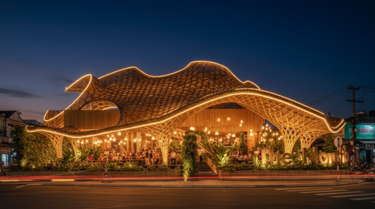 Không gian The Nam Pho tái hiện đời sống miền Tây sông nước mộc mạc, gần gũi thiên nhiên. Kiến trúc giản dị kết hợp cảnh quan vườn tược, bếp củi và sông ngòi, tạo nên một không gian sống chân thật, đậm bản sắc Nam Bộ.